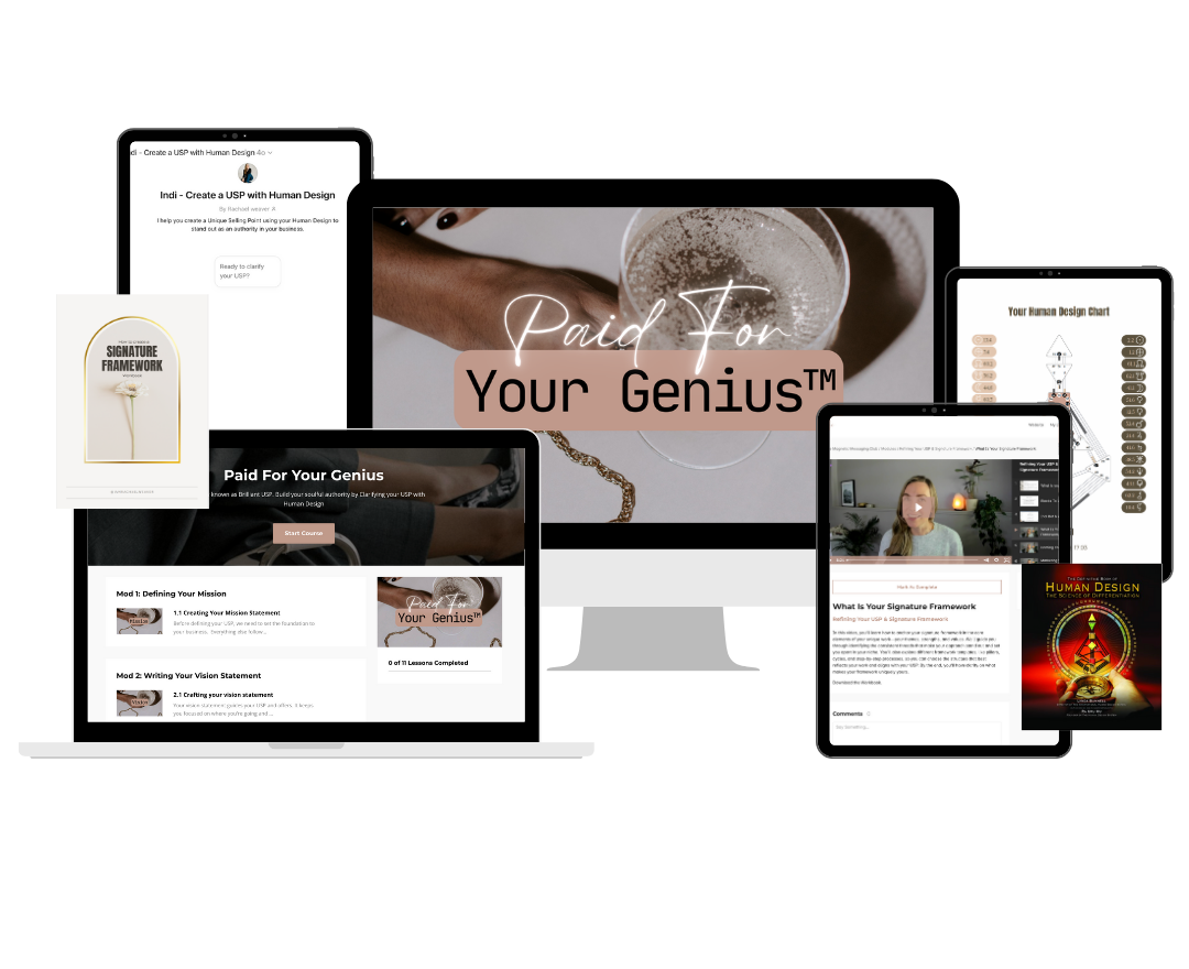 Paid For Your Genius uses your Human Design to articulate your work clearly, define a methodology that’s uniquely yours, and position yourself so your genius is finally recognized—and paid.
